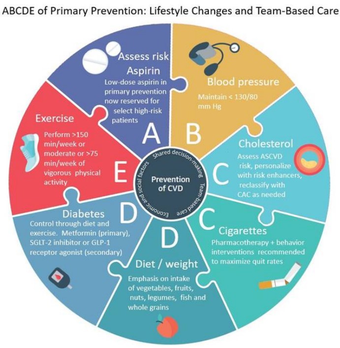 [1] Arnett DK, Blumenthal RS, Albert MA, et al. 2019 ACC/AHA Guideline on the Primary Prevention of Cardiovascular Disease: A Report of the American College of Cardiology/American Heart Association Task Force on Clinical Practice Guidelines. Circulation. 2019;140(11): e596-e646. doi:10.1161/CIR.0000000000000678